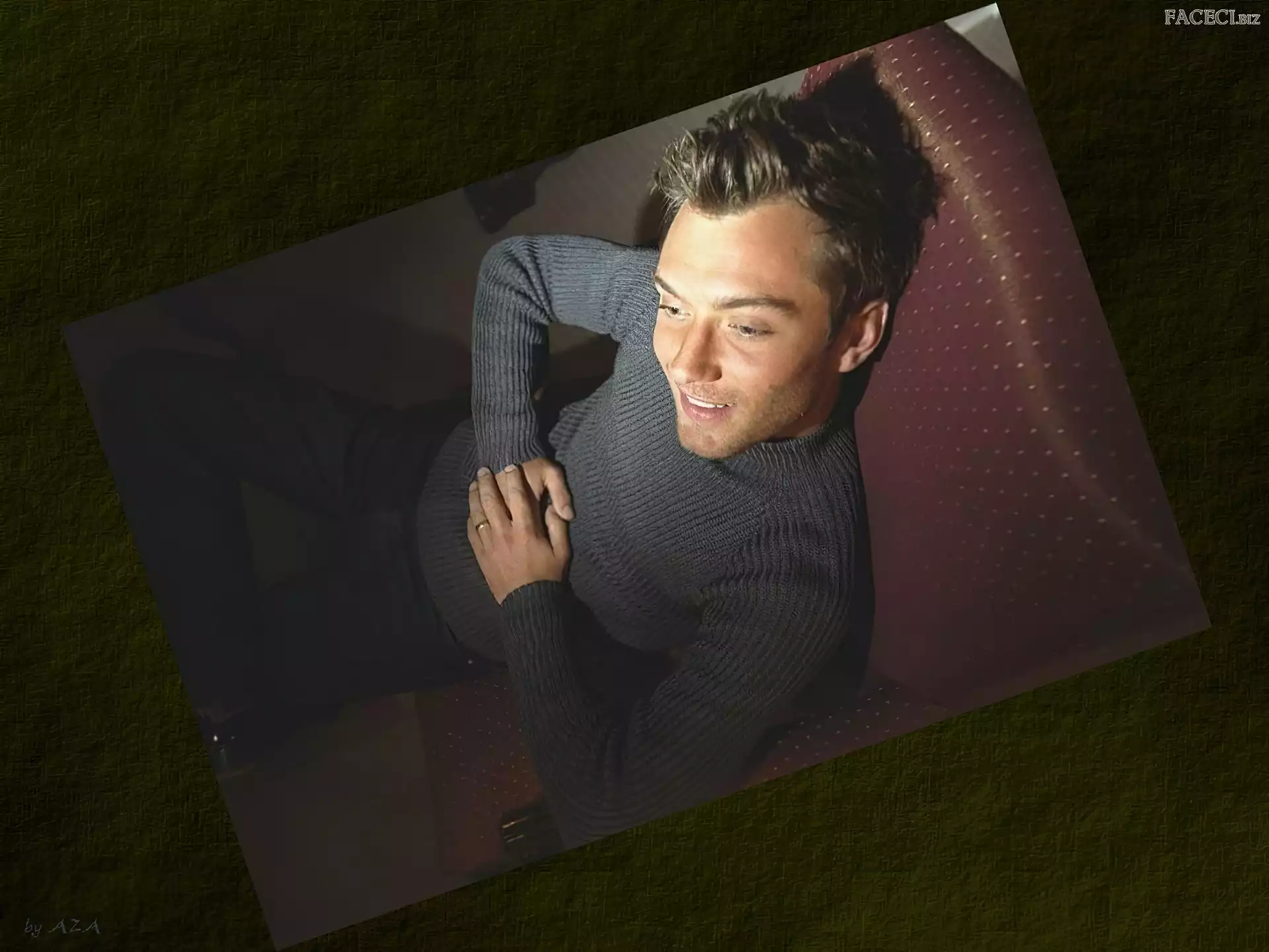 Jude Law, uśmiech Jude Law, kręcone włosy Jude Law, twarze para, Jude Law, the holiday Jude Law, Could Mountain krawat, Jude Law, jasne oczy Jude Law, czarny t-shirt Jude Law, sweterek Jude Law, jasne włosy broda, Jude Law, niebieskie oczy palce, Jude Law, twarz Jude Law, jasne włosy Jude Law, złożone ręce Jude Law, niebieskie oczy
